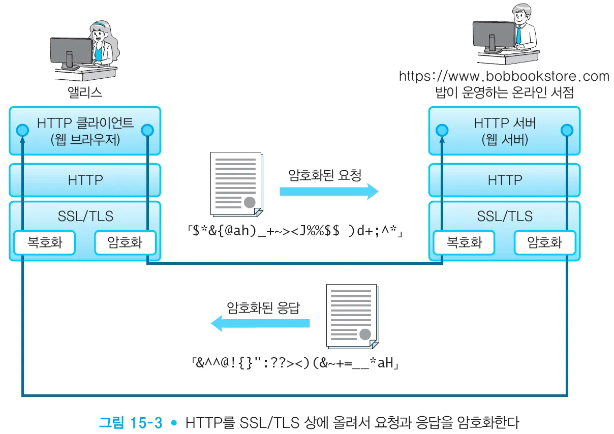 통신 내용을 암호화해 주는 프로토콜로서 SSL(Secure Socket Layer) 혹은 TLS(Transport Layer Security)를 이용