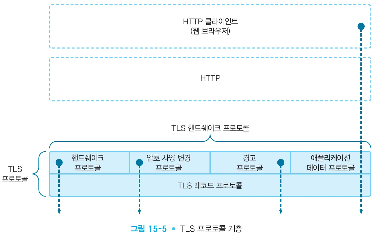 TLS 핸드쉐이크 프로토콜 밑에 위치