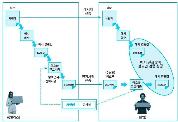 원본 메시지에 대한 해시 값을 서명자의 개인키로 암호화 하는 것