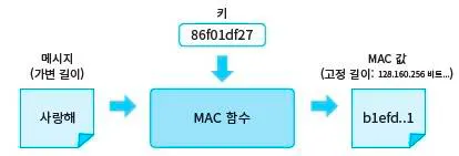 추가적인 키를 이용하여 메시지에 MAC 함수를 적용하여 계산된 값
