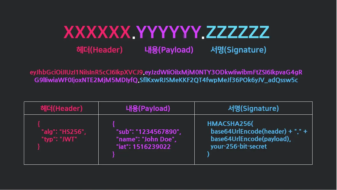 .을 기준으로 좌측부터 Header, Payload, Signature 를 의미한다.