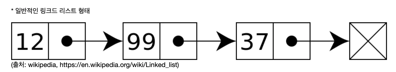 연결을 위한 별도 데이터 공간이 필요하므로, 저장공간 효율이 높지 않음