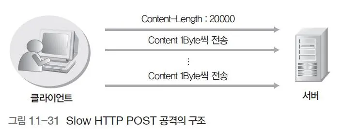 서버로 전달할 HTTP 메시지의 Header 정보를 비정상적으로 조작하여 웹 서버가 헤더 정보를 완전히 수신할 때 까지 연결을 유지하도록 하여 시스템 자원을 소비시켜 다른 클라이언트의 정상적인 서비스를 방해하는 공격