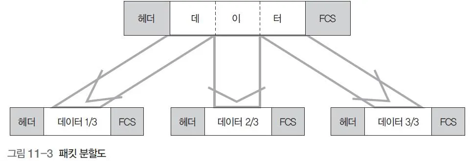 채킷이 지나는 네트워크의 최대 전송 길이가 100 바이트라면 패킷 하나가 655개로 자동 분할