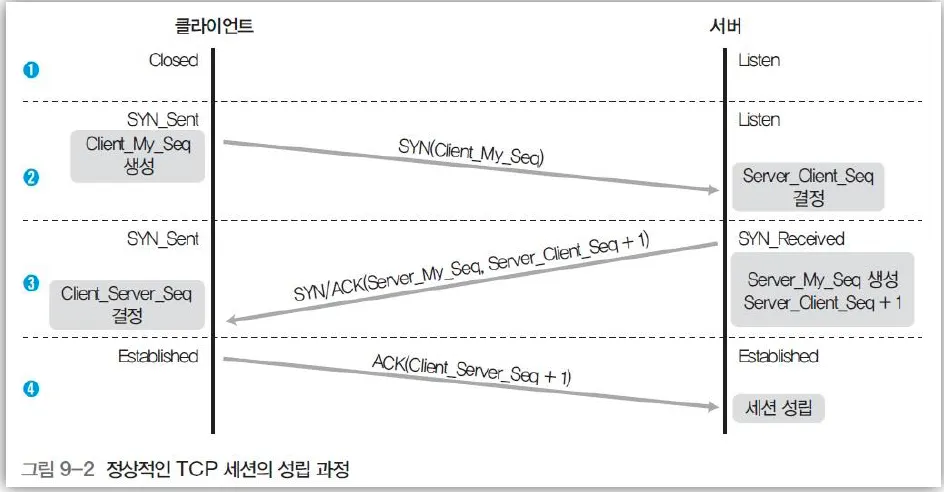 서버와 클라언트가 통신할 때 TCP 시퀀스 넘버를 임의로 선택하는 공격법
