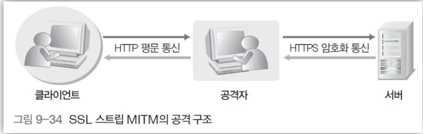 공격자는 클라이언트와 서버 간의 모든 암호화된 HTTPS 데이터를 HTTP로 변조하여 클라이언트에 전달
